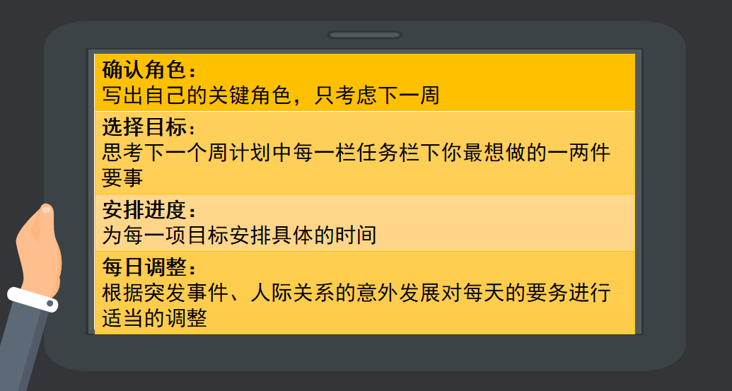 所以,若想做到把时间和精力集中到第二象限的活动上,需要以下四项关键步骤: