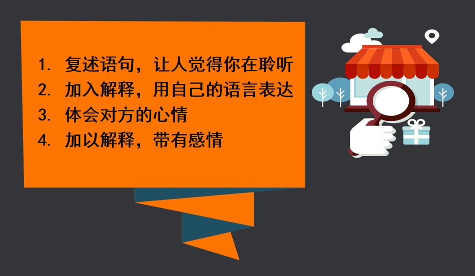 如果你想养成真正有效的人际沟通习惯,就不能单靠技巧,首先你要“知彼”。因此,“知彼”的关键在于移情聆听,这至少包括以下4个阶段: