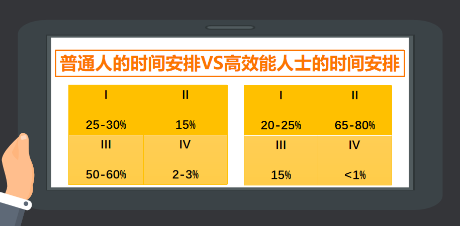 我们发现高效能人士的花费时间最多的重要的事情,不是最危机、最急迫的事情,而是个人觉得有价值及对个人使命、价值观、对优先目标具有贡献的活动。这些事会使你的生命更丰富、更有意义,但是这些事情多数是不急迫的。
